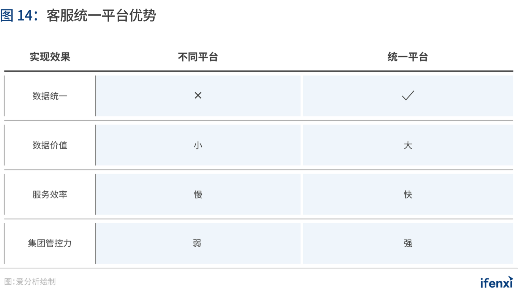 相比较而言,集团升级成统一呼叫中心,下属公司服务数据对接到集团统一的数据平台中。集团可以实时查看,根据数据判断各个下属公司的服务效率、服务质量等,进而可以通过这些服务数据判断各条业务线的产品服务能力,作为未来集团制定产品战略的辅助依据。因此,统一管理的各下属公司的呼叫中心发挥出了更大价值。
