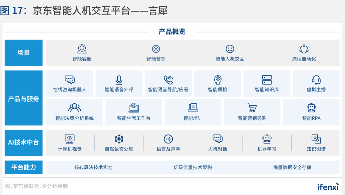 最终,在对市面上多家智能客服厂商产品的综合考察评估后,该呼叫中心服务商选择与京东智联云合作,整体升级其客服智能化系统,希望用智能客服产品取代大部分原有的人工客服。京东智联云(JD Cloud & AI)是京东集团旗下的智能技术提供商,其智能人机交互事业部拥有智能语音应答、智能座席工作台、在线咨询机器人、智能语音外呼等多款智能客服和营销产品,为企业打造完整的智能客服与营销全链路解决方案,其服务覆盖金融、政府、零售、教育等领域。