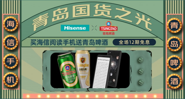 8月15日,在海信手机京东自营期间点购买阅读手机系列产品,不仅全场12期免息,还赠送青岛啤酒全麦白啤一箱(500ml*12瓶)。