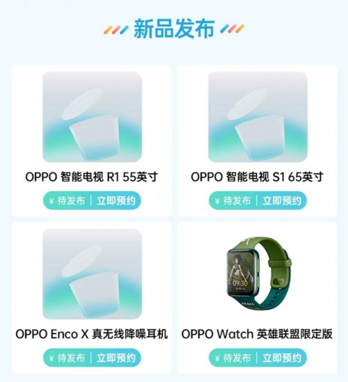 OPPO也在天猫、京东、欢太商城等电商平台上架了“OPPO互联全家桶”的预约链接,从目前预约界面上可以看到OPPO智能电视 R1、OPPO智能电视 S1、年度声学旗舰OPPO Enco X真无线降噪耳机和OPPO Watch 英雄联盟限定版等IoT新品都会在10月19日当天发布。