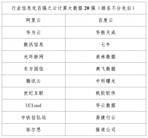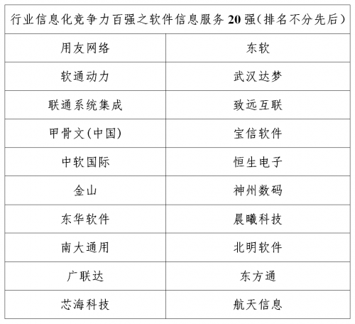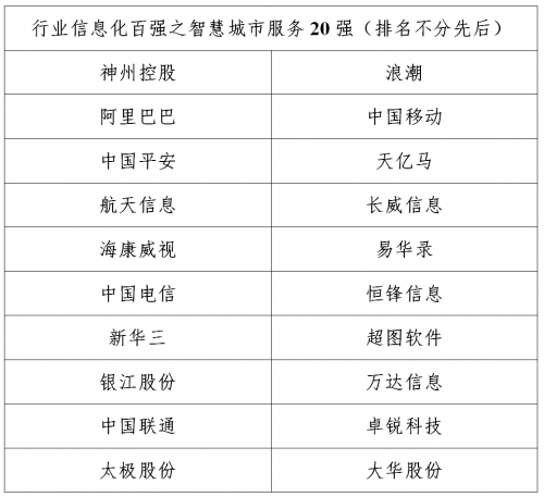 以下为2020行业信息化竞争力百强(排名不分先后):