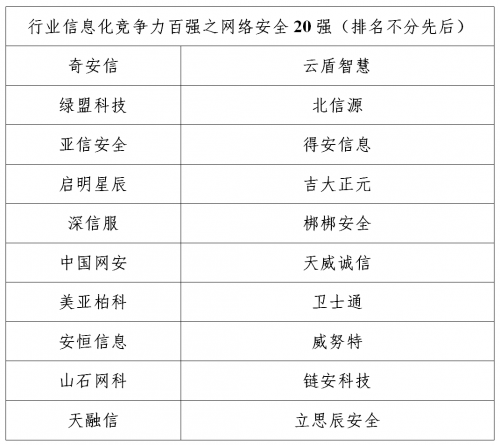 附件五:安全保障发展 2020行业信息化百强之网络安全20强