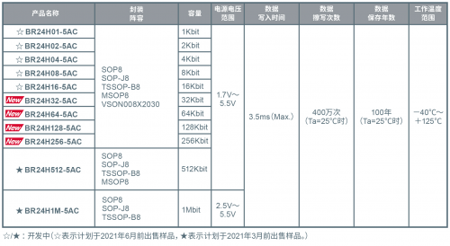 对象产品:支持I2C总线和125℃工作的EEPROM“BR24H-5AC系列”