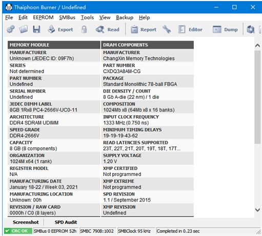 另外我们还能看到DRAM芯片采用的是长鑫储存,所以朗科超光算是国产芯内存,这在价格上也有了很大优势。同时国产合肥长鑫颗粒,性能很强的,默认电压随便可以稳定运行在2800MHz/3000MHz以上频率,下面笔者就对其进行一定的超频测试,看看它的潜力到底有多大。
