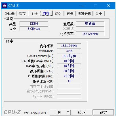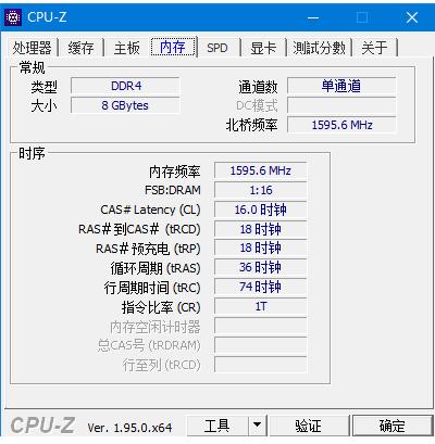 为了有所对比,先对台式机原本的单根内存条做了简单测试,通过CPU-Z我们可以看到原来内存条同样是DDR4,但频率是2400MHz。