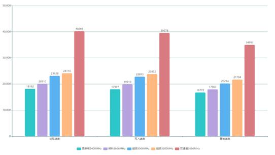 事实证明我多虑了,为保守起见,选择了2666频率,性能相比单根时候有成倍的提升,读取速度40269MB/s、写入速度39578MB/s、复制速度34993MB/s。