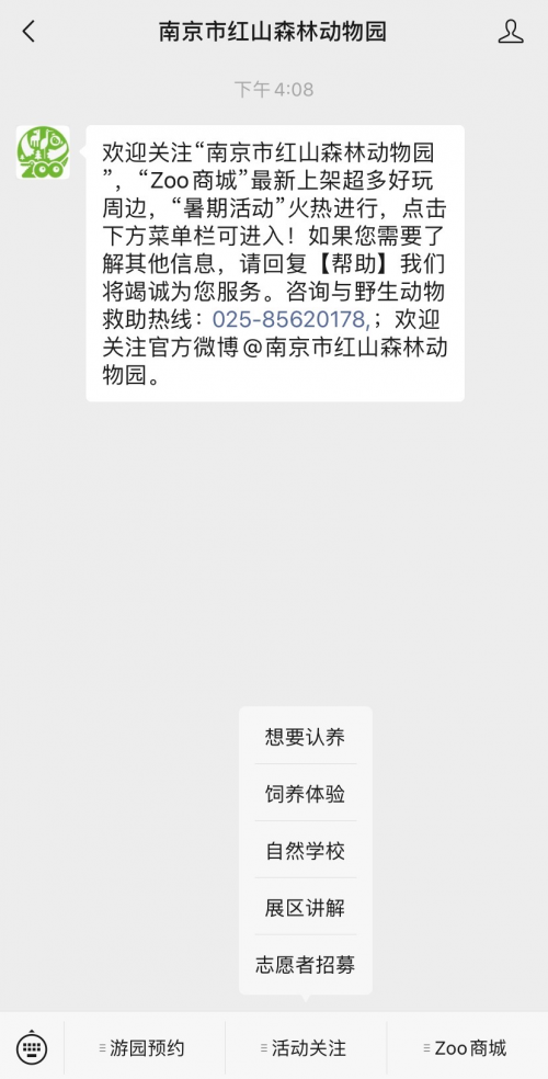 关注“南京市红山森林动物园”微信公众号云认养
