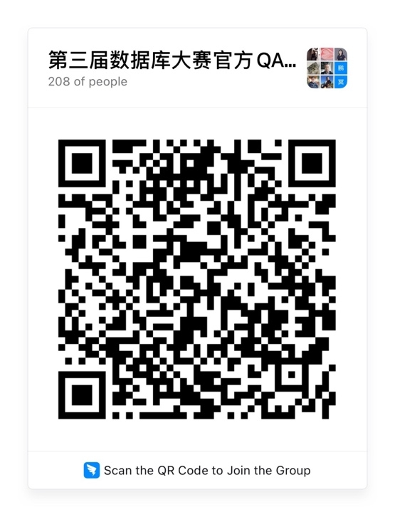 更多信息请扫码加入第3届数据库大赛选手问答钉钉群:31284752,最新通知将会第一时间在群内同步。