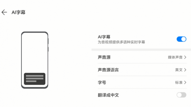 看在线视频直播没字幕,看最新的“生肉”美剧没字幕,如此场景也是很多用户的痛点,对此EMUI 11全都看在眼里。此次EMUI 11推出了全局声音转文字的AI字幕功能,能够把音频实时转成文字并形成字幕呈现出来,从此无论在安静亦或是嘈杂的环境下,用户无需佩戴耳机,也能轻松get到视频中的音频信息。并且该功能还支持英语转中文的翻译,美剧追起来更快速,并且后续升级后还会增加日语、韩语转中文的功能,日剧、韩剧追起来更easy!